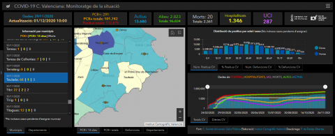 Por otra, parte, la Conselleria ha informado que actualmente hay 1.265 personas ingresadas en los Hospitales Valenciano, 120 en la provincia de Castellón, con 28 pacientes en UCI; 389 en la provincia de Alicante, 95 de ellos en la UCI; y 756 en la provincia de Valencia, 155 de ellos en UCI.