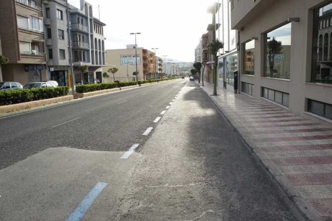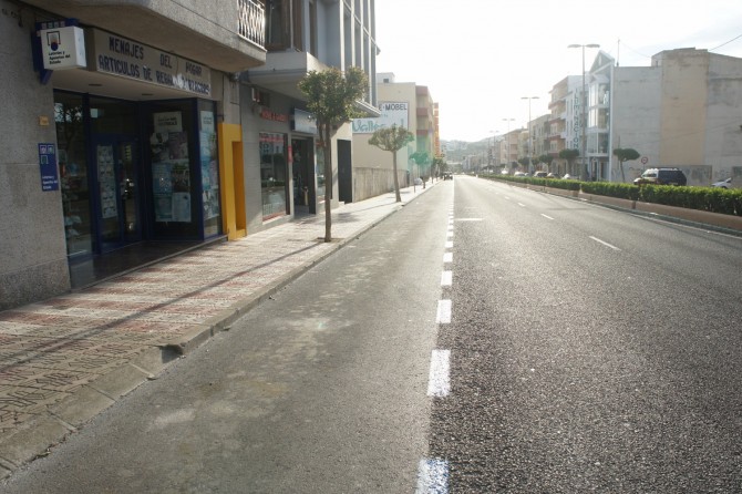 ausencia de vehículos aparcados en esta arteria principal del núcleo urbano de