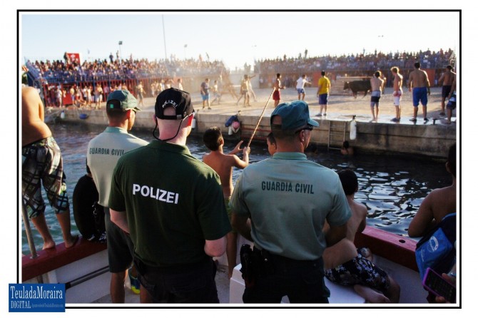 Pequeña mención a la benemérita que se encontraba en el puerto presenciado estos actos y a los que les acompañaba un policía alemán que se encuentra en nuestro país dentro del convenio que tienen los distintos cuerpos de fuerzas y seguridad del estado, dentro de las practicas de su ascenso a oficial en su país y al que se le vio encantado con estos bous a la mar.