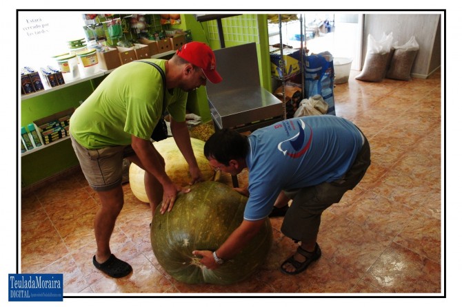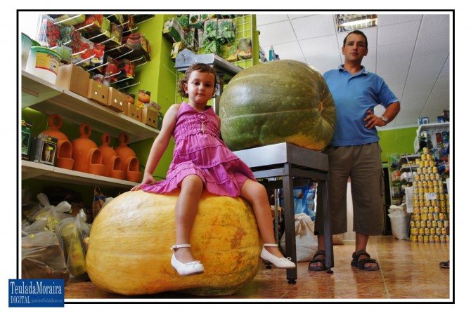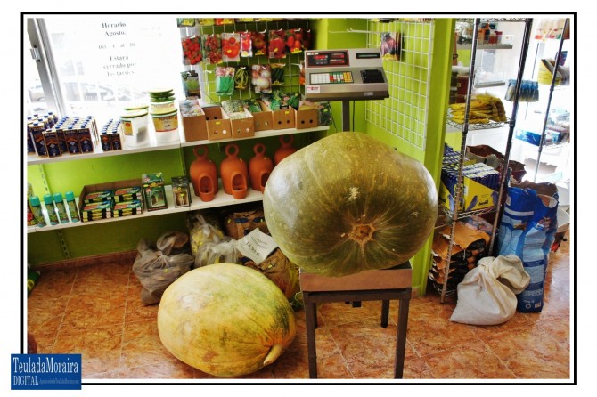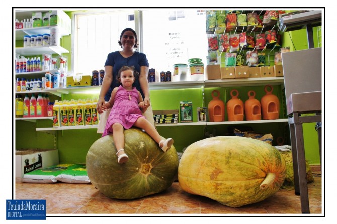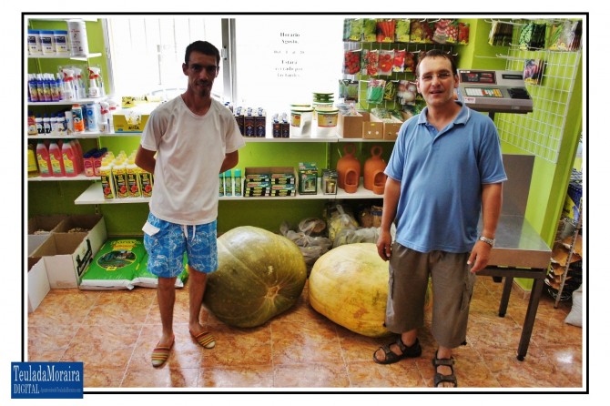 Con semillas de calabazas gigantes traídas desde Canarias, en la Partida del Pla de la localidad teuladina-donde se encuentra el "picadero" de palomos, "penya la brocha", se conseguía el reto, de obtener dos gigantescas calabazas. En la imagen se pueden apreciar el tamaño alcanzado, con un peso 85 y 75 kilogramos respectivamente. Ambos frutos pertenecientes a la familia de las Cucurbitáceas estarán expuestos durante todo este mes en la tienda Piacan ubicada en la Calle Benissa, nº 12 de Teulada.