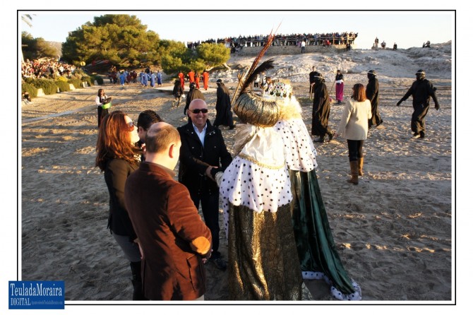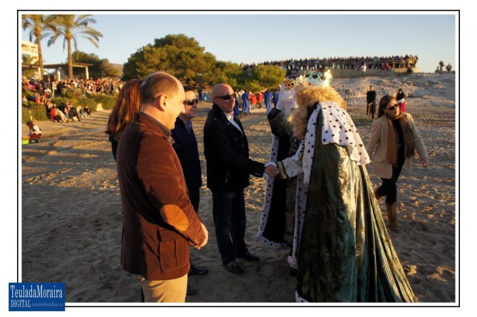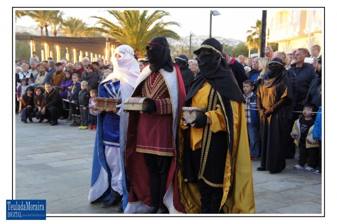 [Img #13058]Teulada-Moraira presenció la venida de  sus Majestades los Reyes Magos de Oriente en la tarde noche de ayer. Las autoridades locales fueron las encargadas de recibir  a Melchor, Gaspar y Baltasar en los dos núcleos de población. En el núcleo urbano de  Moraira los tres reyes llegaban a lomos de caballos por la playa de L'Ampolla, donde cientos y cientos de niños y niñas en compañía de sus familias esperaban con ilusión esta llegada. En el núcleo urbano de Teulada  sus Majestades llegaban en carruaje y de igual modo los auténticos protagonistas del recibimiento - los niños y niñas del municipio- esperaban que los tres reyes hicieran su entrada en la población para acompañarlos hasta la plaza del Ayuntamiento.