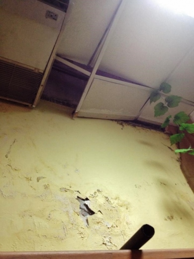 Presumiblemente el fuerte viento de esta noche junto a las lluvias, ha hecho ceder parte del tejado u otros elementos aún por determinar de la estructura de esta nave desatendida en palabras de Valles , quien solicitaba que al menos se le contestara desde el consistorio a las instancias solicitadas y que los técnicos hicieran las gestiones oportunas para controlar el problema existente.
