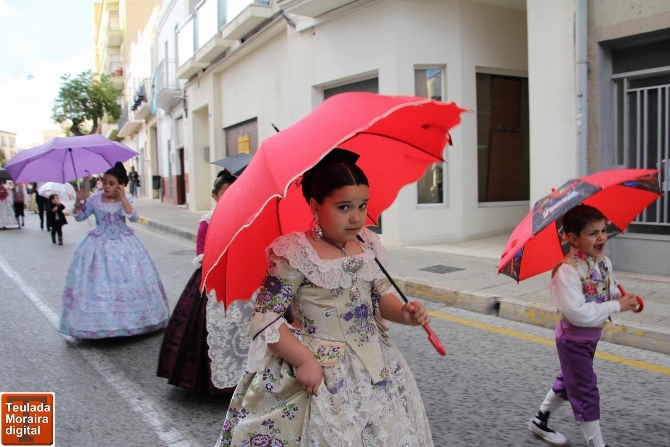 Los primeros en desfilar fueron los componentes de la Comisión Infantil, una comisión formada por 32 niños y niñas de 6 años de edad, siendo su Reina, Fátima Dogue, acompañada de su festero Vicent Marzal, su primera Damita, María Martí y Danilo Ortolá, y la segunda Dama Marta Escrihuela acompañada de Voro Granell.