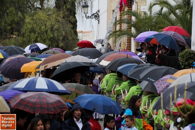 Sin duda la vistosidad del pasacalles con los paraguas, mostraba con mayor amplitud el fervor popular que los teuladinos siente por su Santo Patrón. Simbolismos, religión, música, flores acompañaban a los ciudadanos y asociaciones que componían el pasacalles que partía desde la calle Sant Vicent Ferrer, hasta la ermita con su mismo nombre.