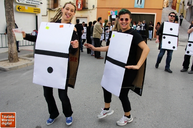 Los participantes destacaron por su originalidad, ya que se pudo presenciar comisiones de años anteriores disfrazados de "L´empalme", de loros, de hippys, de fichas de dominó, otros de tractor amarilllo, de patos, de coro de gospel, de juego de parchís, así como las madres de los festeros infantiles de originales macetas, o "Massa ciri per a tanta poca processó".