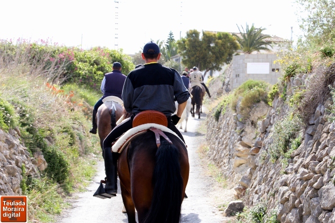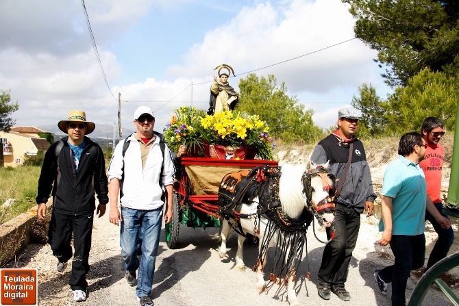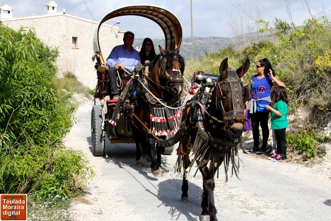 Tras esta primera parada, la romería continuaría hasta la Font Santa. En este punto la Asociación de Traginers Alejandro Morell organizador de este acto junto a la Comisión de Fiestas 2013, se uniría con  más de 40 caballos entre monta y carruajes, venidos de Benitachell, Benissa, Xaló, Oliva y otras poblaciones donde están vinculados este tipo de actos.