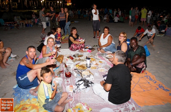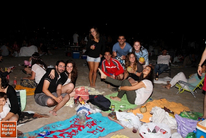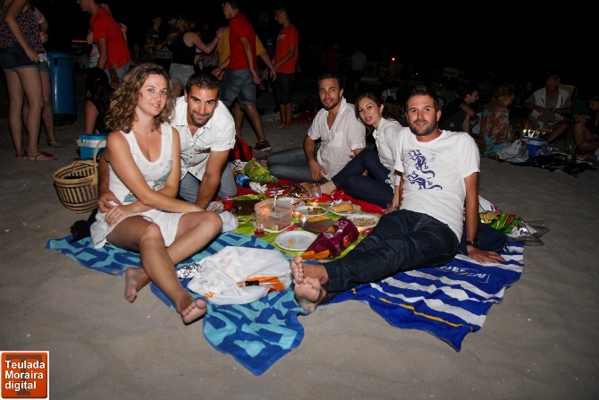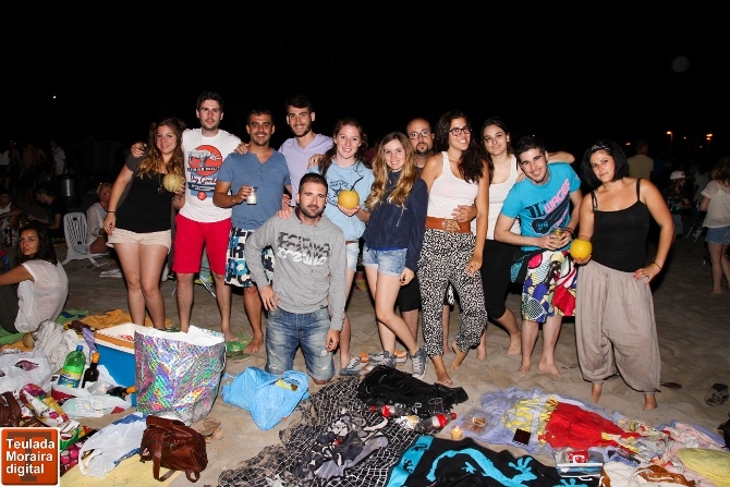 En Moraira el ritual de bañarse los pies reunió un año más a cientos de visitantes en la playa de l'Ampolla, siendo precisamente las imágenes que acompaña este escrito fiel reflejo de ese momento.