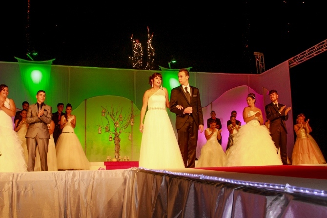 Y, ante los aplausos, tomaba el escenario la niña Paloma Llobell que llevaba una vela que se depositó en el escenario en un árbol que ilustraba la vida, y seguidamente los presentadores fueron llamando a cada joven de 18 años de edad con la originalidad que en cada presentación la cantante junto a la música de la Dixie cantaba una pieza de jazz, y las jóvenes portaban cada una su nombre en un farol con un cirio que colocaban en el citado árbol.