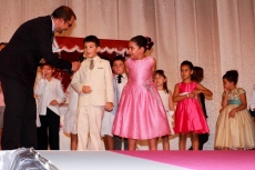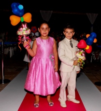 Con un escenario muy original donde representaba un feria con sus carros de golosinas los conductores del acto presentaron con un original vídeo a los 28 pequeños que conforman la Comisión Infantil y seguidamente fueron llamando a las 15 niñas quienes depositaron su nombre en un original ramo de globos.