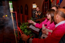 [Img #20637]Las fiestas vivieron ayer su primer día. La jornada repleta de actos, como la llegada de la imagen de San Vicente Ferrer desde la Font Santa y su traslado en romería desde la plaza Gabriel Miró hasta la Ermita dejó paso al inicio oficial de las fiestas con el gran chupinazo y la lectura del pregón por parte de la Reina de Fiestas 2015, Cristina Pérez Llorca. A continuación las jóvenes festeras vivieron una de los momentos más esperado como fue la noche de 'albades'. Tatiana y Joan del grupo "Arrop i Talladetes" acompañados de los tradicionales instrumentos de "dolçaina i tabalet" dedicaron los versos cantados a las festeras. Como anécdota, uno de los primeros versos cantados fue en este caso para un festero que cumplía años en el día de ayer.