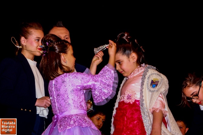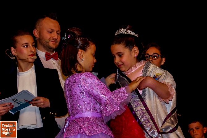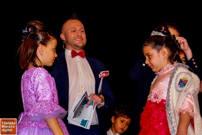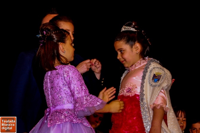 La niña Paula Ivars Burrueco, acompañada de Estefan Daniel Bocica y la joven, Cristina Pérez Llorca, acompañada por Alejandro Andrés Morell, fueron coronadas oficialmente ayer noche como Reinas de Fiestas 2014, en un acto lleno de sorpresas y cambios que sorprendieron gratamente al público asistente.