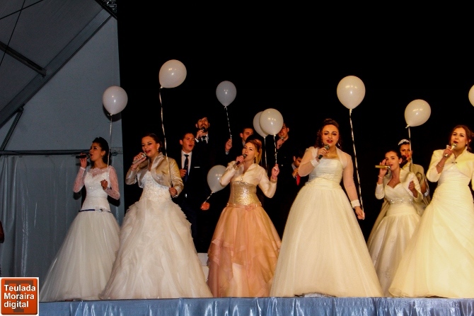El primer cambió en la noche de ayer se pudo apreciar cuando todos los festeros y festeras a excepción de la Reina -de 2015- y su acompañante, al unísono, ocuparon el escenario para ofrecer una actuación musical, versionando la canción Blue Moon gracias a los arreglos de la profesora del Conservatorio teuladino Monte Tro y “la Escuela de Música Si fa Sol de Benissa. Un acto novedoso que vistos y escuchados los aplausos del público, fue del gusto de todos. A continuación subió al escenario toda la comisión Mayor de Fiestas, para de este modo, formar todos juntos, parte del momento de la coronación, coronación que no se hizo esperar, pues tras ellos, el turno para subir al escenario fue de Cristina Pérez Llorca, acompañada por Alejandro Andrés Morell.