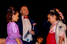 El acto celebrado en la ya tradicional carpa instalada en la plaza del VI Centenari ante un numeroso público, arrancó con la presentación de los niños y niñas de la comisión infantil. Los presentadores, Carme Bisquert Ortolá, Mar Baydal Hernández y Adrián Llobell Sala, fueron los encargados de presentar a los niños y niñas de la comisión de fiestas 2014.