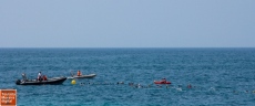 Acompañados en todo momento de un servicio de socorrismo y ambulancia, los participantes fueron llegando poco a poco a la cala l´ Andragó. El primer nadador llegó transcurridos tan solo 20 minutos de la salida.