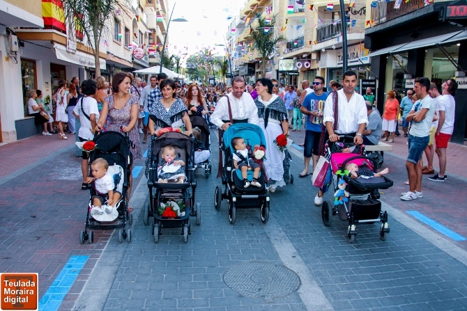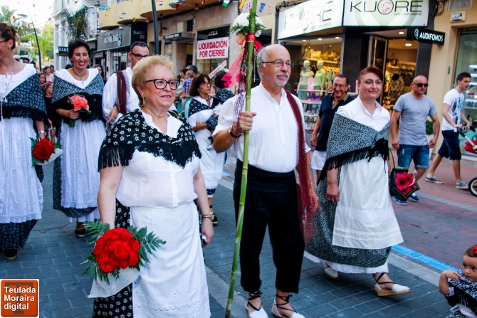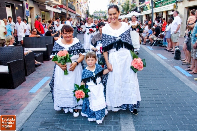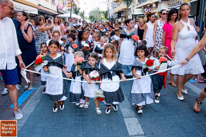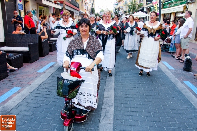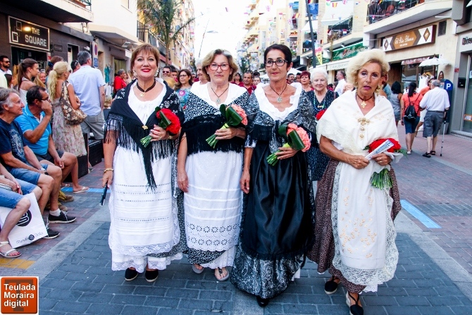 Como cada año durante las fiestas patronales de Moraira, los vecinos se concentraron en la avenida del Portet, para desde allí dar inicio al recorrido que les llevó hasta la pequeña ermita situada a los pies del castillo, lugar donde esperaba el cura párroco del municipio, D. Vicente Solera, para recoger los ramos que cubrieron a modo de manto la pequeña imagen venerada de la Virgen de los Desamparados