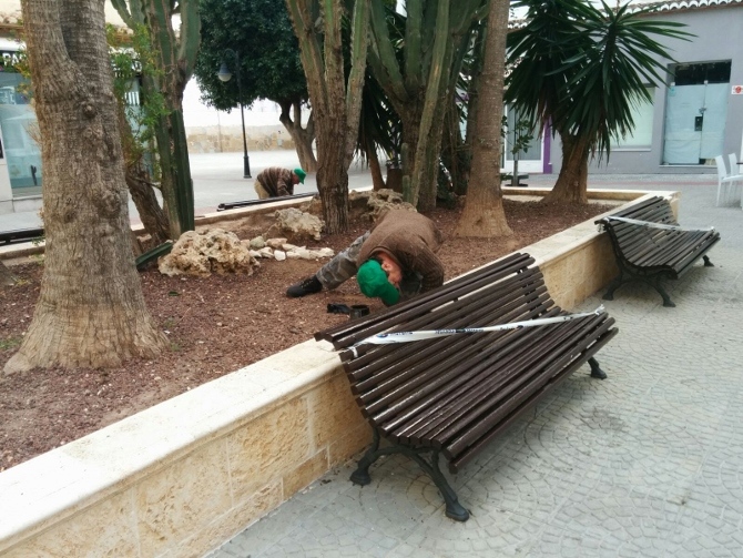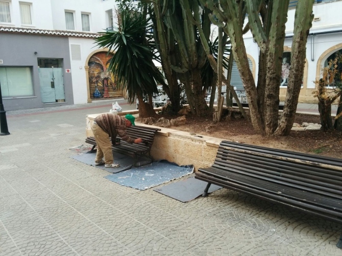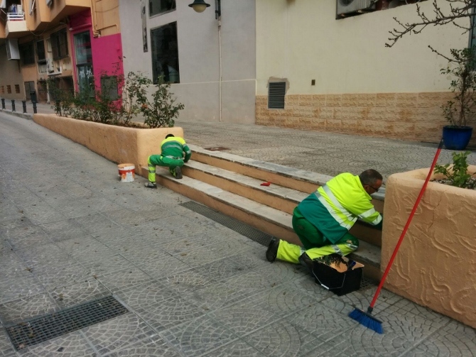 Servicios Generales inicia una campaña de acondicionamiento y pintura de bancos públicos, jardineras y escalones por el municipio