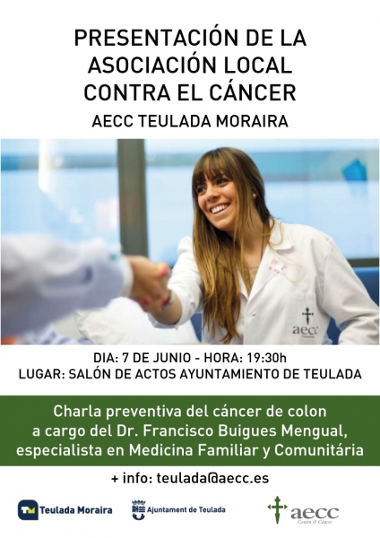 Una cita obligada la del próximo martes 7 de junio a las 19:30 horas en el salón de actos del consistorio local, jornada escogida para la presentación de la Asociación Local Contra el Cáncer de Teulada Moraira.