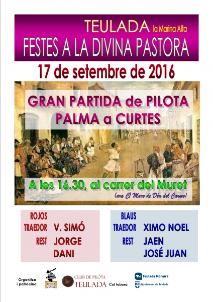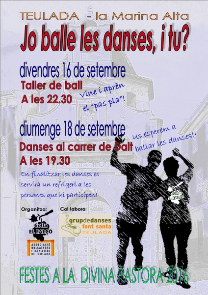 Las fiestas empezarán el próximo día 16 de septiembre a las 20:00h. con la entrada de la murta, la plantada del “xop” y ornamentación de los alrededores de la Ermita de la Divina Pastora. Más tarde, cena de “recapte” y taller de baile a la plaza de la Iglesia y a al carrer de Dalt.