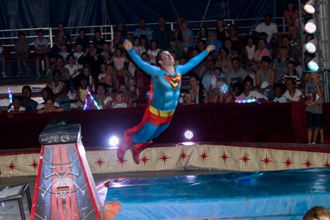 La segunda parte está centrada en el circo más tradicional. Mención especial a los increíbles ejercicios acrobáticos de los súper héroes del momento con muchas risas aseguradas.