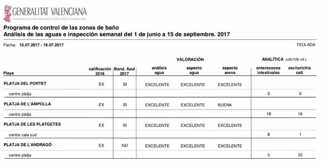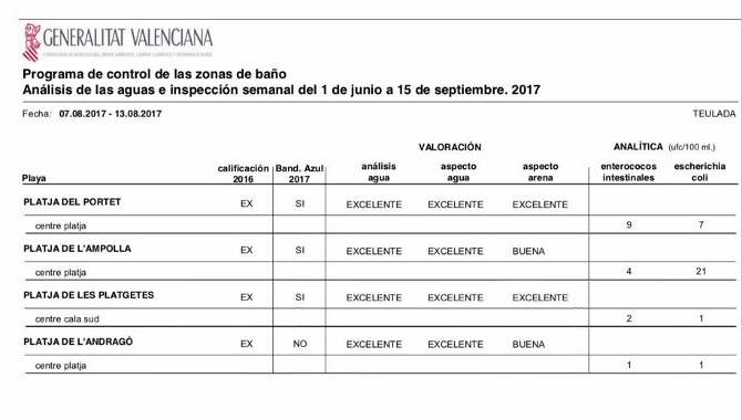 Estos datos, obtenidos por los estudios semanales que realiza en las playas la Generalitat Valenciana, continúan demostrando la alta calidad de las playas de Teulada Moraira que cada día atraen a más bañistas y visitantes no solo por el espectacular enclave sino también por la calidad de las aguas y arenas.