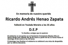Comunican que el velatorio tendrá lugar en el Tanatorio y Crematorio de Jávea