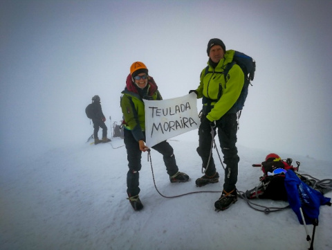 Los alpinistas Carolina Trápaga y José Villegas llevan el nombre de Teulada Moraira hasta la cima del Kazbek (5.047m) en Georgia