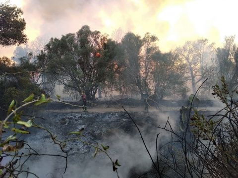 2 unidades de bomberos forestales, 2 autobombas, 1 coordinador forestal y 2 medios aéreos, en este caso 2 unidades de la Sociedad de Gestión de los Servicios de Emergencia de la Generalitat Valenciana, se han movilizado en  el incendio forestal que se ha declarado en la Vall de Laguard, en una zona de alto valor ecológico.