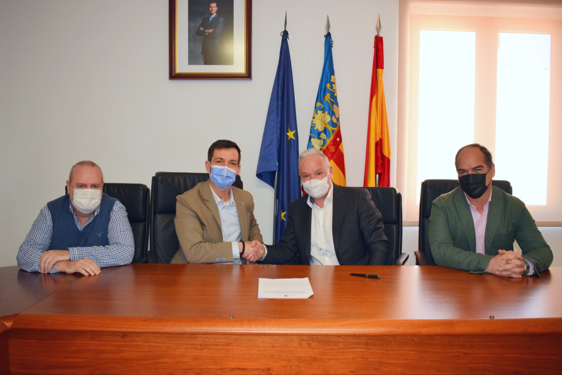 Este miércoles, el Ayuntamiento del Poble Nou de Benitatxell y Colegios Laude S.L.U, entidad propietaria del colegio Lady Elizabeth (LES) en el municipio, han firmado un convenio por el que el centro de educación secundaria se compromete a aportar 458.814 euros al consistorio para sufragar parte de la construcción de una rotonda en la intersección de la CV-740 con la entrada a la urbanización Cumbre del Sol. En la firma han estado presentes el alcalde, Miguel Ángel García, y Phillip Andrew Mitchell, de Colegios Laude S.L.U.