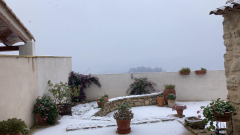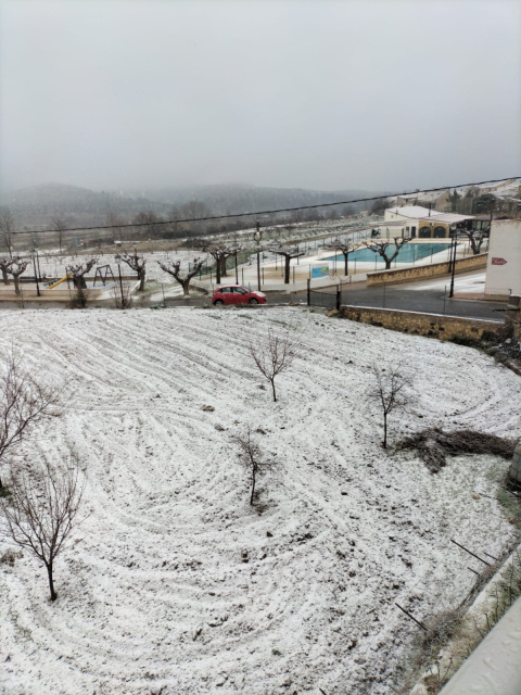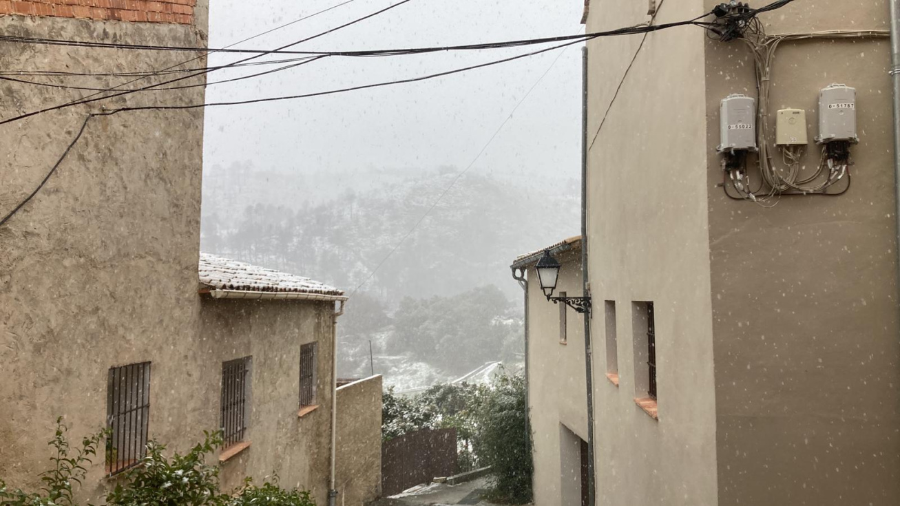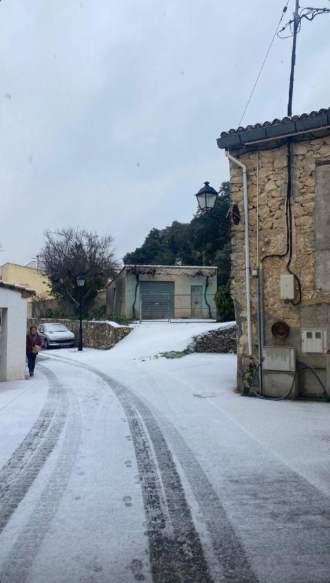 La Marina Alta vuelve a cubrirse este domingo 29 de enero con un fino manto de nieve debido a las bajas temperaturas. La Vall d'Alcalà, un pequeño municipio con 200 habitantes en el noroeste de la provincia de Alicante, es uno de los municipios afectados.