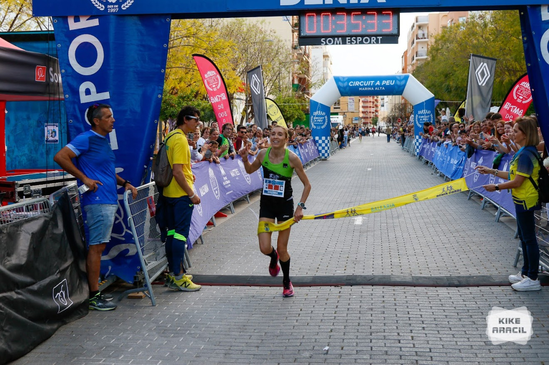 María Isabel Ferrer, del CA Llebeig Xàbia, voló adjudicándose otra victoria en la Capital de la Marina, el nuevo recorrido le fue como anillo al dedo y rebajo en poco más de dos minutos el tiempo de la anterior edición, Ferrer detuvo el crono en un tiempo de 35:33 a 3:35 el kilómetro, la segunda chica en cruzar la línea de meta fue Marta Pérez del CA Cametes de Pedreguer, con un registro de 37:39, mientras que la veterana Ana Sala, del CA Dorsal 19 Pego, fue tercera en el pódium absoluto femenino con un tiempo de 41:59.
