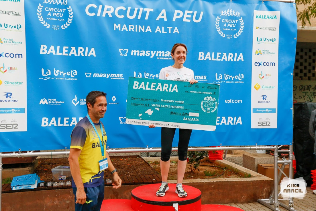 La afortunada con el viaje a las Islas Baleares para dos personas, gentileza de la Naviera Baleària, se lo llevó la corredora Independiente de Villalonga Esther Molió Tur que registró un tiempo de 50:56 siendo la decimoquinta en categoría de veteranas A.