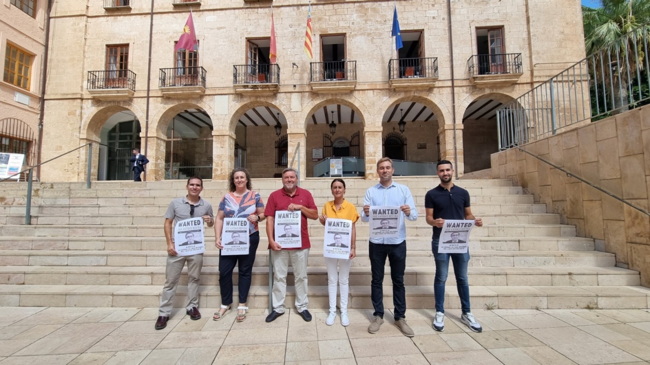 Por todo ello, Gerard Fullana, diputado de Compromís en Les Corts, Ximo Perles, diputado en la Diputación de Alicante o Rafa Carrió, concejal de Compromís en el equipo de gobierno del Ayuntamiento de Dénia, junto a otros representantes de Compromís de la comarca, llevaron a cabo el pasado jueves una acción frente al Ayuntamiento de Dénia en la que expusieron carteles de "Wanted" ("Se busca") con la imagen del conseller de Educació, José Antonio Rovira.