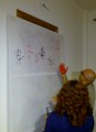 exposición e invitó a los presentes a dejar sus huellas sobre el lienzo y