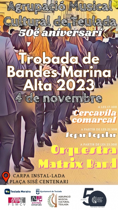 Los amantes de la música están de enhorabuena. El próximo sábado 4 de noviembre tendrá lugar en Teulada el esperado Encuentro de Bandas de Música de la Marina Alta 2023. Un encuentro organizado por la Agrupación Musical Cultural de Teulada dentro de las actividades para conmemorar su 50º Aniversario de historia.