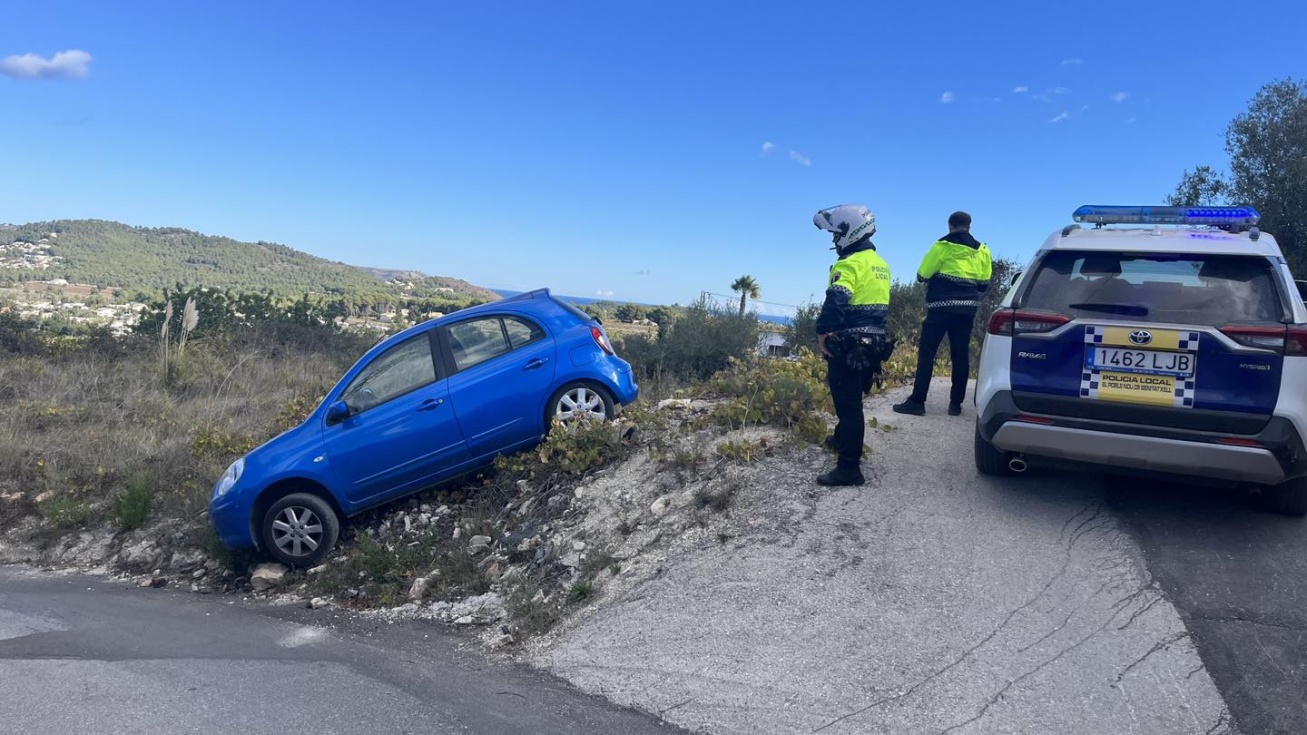 La Policía Local de Benitatxell ha tenido que cortar esta mañana temporalmente el tráfico del Camí del Pouet de Benitatxell debido a que un vehículo ha sufrido un accidente y se ha salido de la vía.