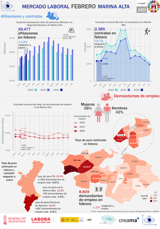 Creama, por medio del Observatori de la Marina Alta, analiza los datos de empleo del mes de febrero 2024