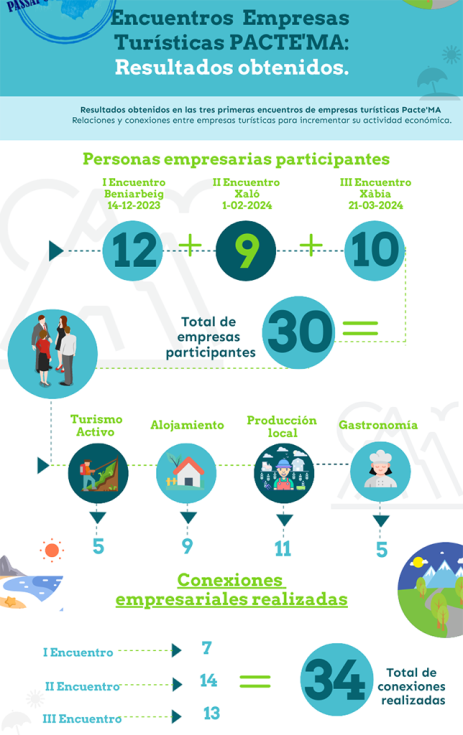 Este hecho ha propiciado que el proyecto Passaport Marina Alta, impulsado por PACTE’MA, lanzara a finales de 2023 una serie de jornadas denominadas Encuentros de Empresas Turísticas. Formato Pitch. Unas jornadas que tienen como objetivo fomentar la actividad económica interterritorial y crear sinergias constantes entre las empresas del sector.
