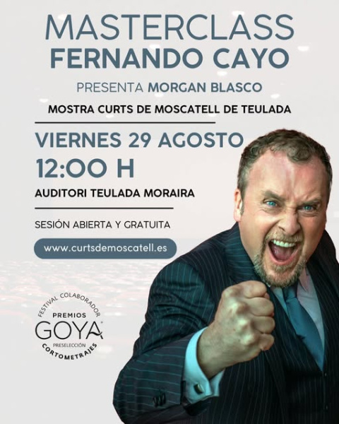 El viernes 29 de agosto, a las 12:00 horas, Fernando Cayo ofrecerá una masterclass gratuita de interpretación, abierta tanto a profesionales como al público general. Esa misma noche, a las 21:00 horas, tendrá lugar la gala de homenaje y la entrega de premios del festival, presentada por el actor Óscar Lasarte.