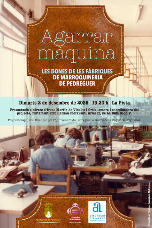 Pedreguer acogerá el próximo martes 2 de diciembre de 2025, a las 19:30 horas, la presentación del estudio “Agarrar màquina. Les dones de les fàbriques de marroquineria de Pedreguer”, una investigación pionera impulsada y financiada por el Ayuntamiento de Pedreguer, a través de la Concejalía de Igualdad. El acto tendrá lugar en La Pista.