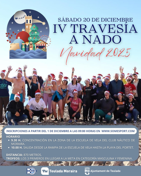 La localidad de Teulada Moraira se prepara para celebrar, el sábado 20 de diciembre, la IV Travesía a Nado de Navidad, una propuesta deportiva y festiva que volverá a reunir a nadadores de distintas edades en un entorno privilegiado.