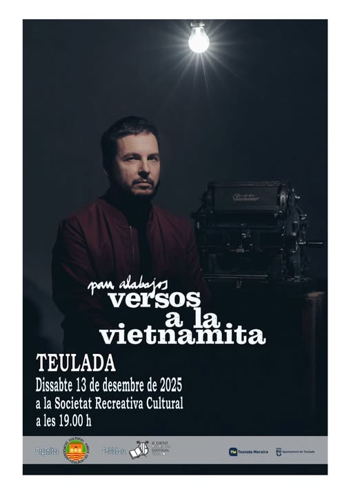 El concierto lleva por título “Versos a la vietnamita”, una propuesta que combina música y poesía y que forma parte de la trayectoria artística de Alabajos, reconocido por su compromiso cultural y social. A lo largo de su carrera, el artista ha recibido numerosos galardones, entre ellos varios Premis Ovidi Monllor (2006, 2008 y 2016), el Premi Enderroc (2008) y el Premi de Teatre Ciutat d’Alcoi (2019).