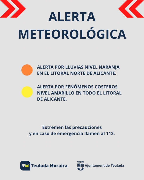 De acuerdo con el parte oficial, se ha procedido a la activación del Plan Especial de Inundaciones y del Plan Territorial de Emergencias de la Comunitat Valenciana, ante la previsión de precipitaciones intensas que pueden afectar al conjunto de la Marina Alta, incluida Teulada Moraira.