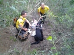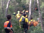Nadie se daba por vencido. Ayer en la mañana, se incorporaban los voluntarios del grupo USAR 13, del DYA. Llevaban cinco perros adiestrados para encontrar a personas. Iniciaron la búsqueda a las 9 horas. A estos voluntarios les tocó adentrarse en la espesura del bosque del barranco de la Viuda. Y allí encontraron a Bernhard, deshidratado y desorientado, inmóvil porque había caído por un terraplén, pero vivo. Y Bijou estaba junto a él. Le había protegido en todo momento.