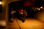 [Img #15894]Tras valorar la situación en un primer momento, los agentes, procedían a la evacuación inmediata de los vecinos que corrían más peligro. Como se puede apreciar en las imágenes que acompañamos, debido a las horas en las que se produjo el incidente, desalojaban la zona con lo puesto y poco más. Un total de cuatro familias, dos residentes y otras dos que pasaban sus vacaciones en nuestro municipio, fueron puestas a salvo. Se vivieron algunos minutos de situaciones dramáticas y de incredulidad al ver como avanzaba el fuego de forma inexorable a sus casas.