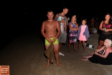 En Moraira el ritual de bañarse los pies reunió un año más a cientos de visitantes en la playa de l'Ampolla, siendo precisamente las imágenes que acompaña este escrito fiel reflejo de ese momento.