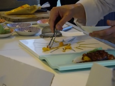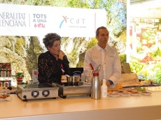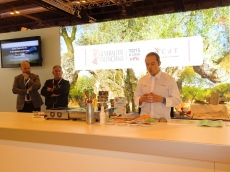El cocinero elabora una creación culinaria inspirada en el sol y el mar en un showcooking para dar a conocer Dolia la muestra de gastronomía y turismo del auditorio de Teulada Moraira