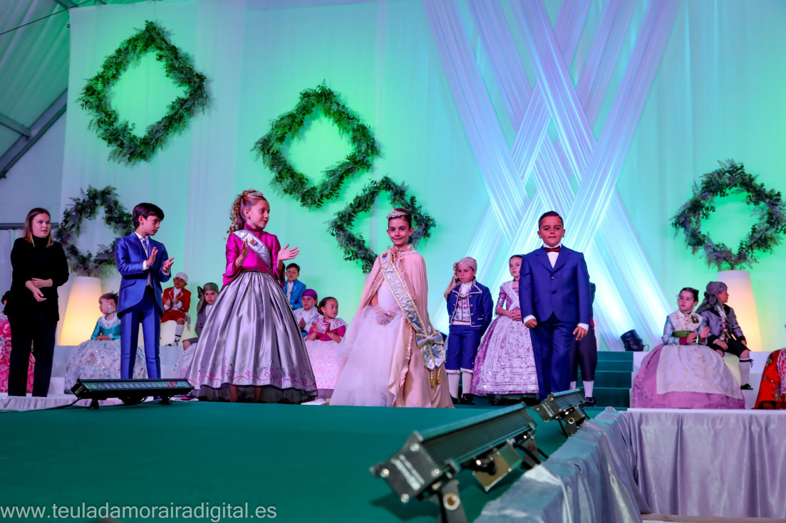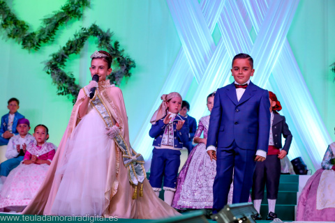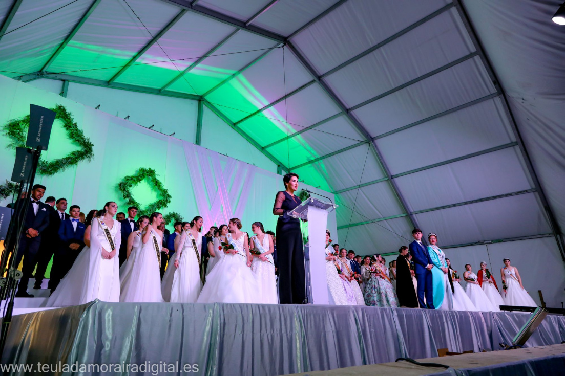 El acto de coronación se dividió en dos partes. En la primera y obre el escenario la Reina Infantil de 2012, Emma Martínez Benavent coronaba a la Reina Infantil 2023 Valentina Pino Oller Paula Llobell, mientras que en la segunda parte, la Reina Mayor 2022, Lorena Ern Sapena, hacía lo mismo con la Reina Mayor 2023, Nerea Sapena Sandoval.