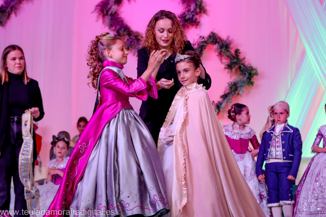 La niña Valentina Pino Oller y la joven Nerea Sapena Sandoval, en la noche de ayer, fueron coronadas oficialmente como Reinas de las fiestas patronales de Teulada 2023 en el acto que tuvo lugar en la plaza del VI Centenari.