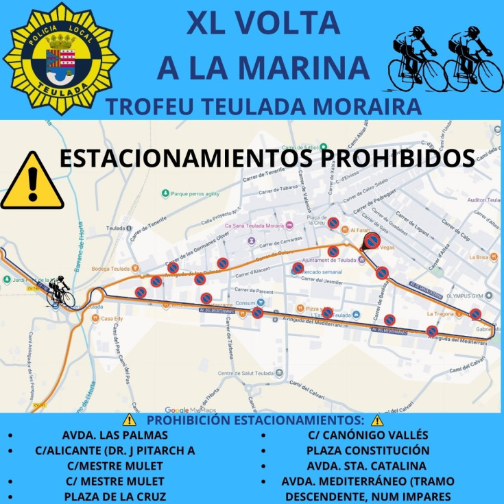 La Policía Local de Teulada informa de cortes y desvíos de tráfico por la Volta a la Marina